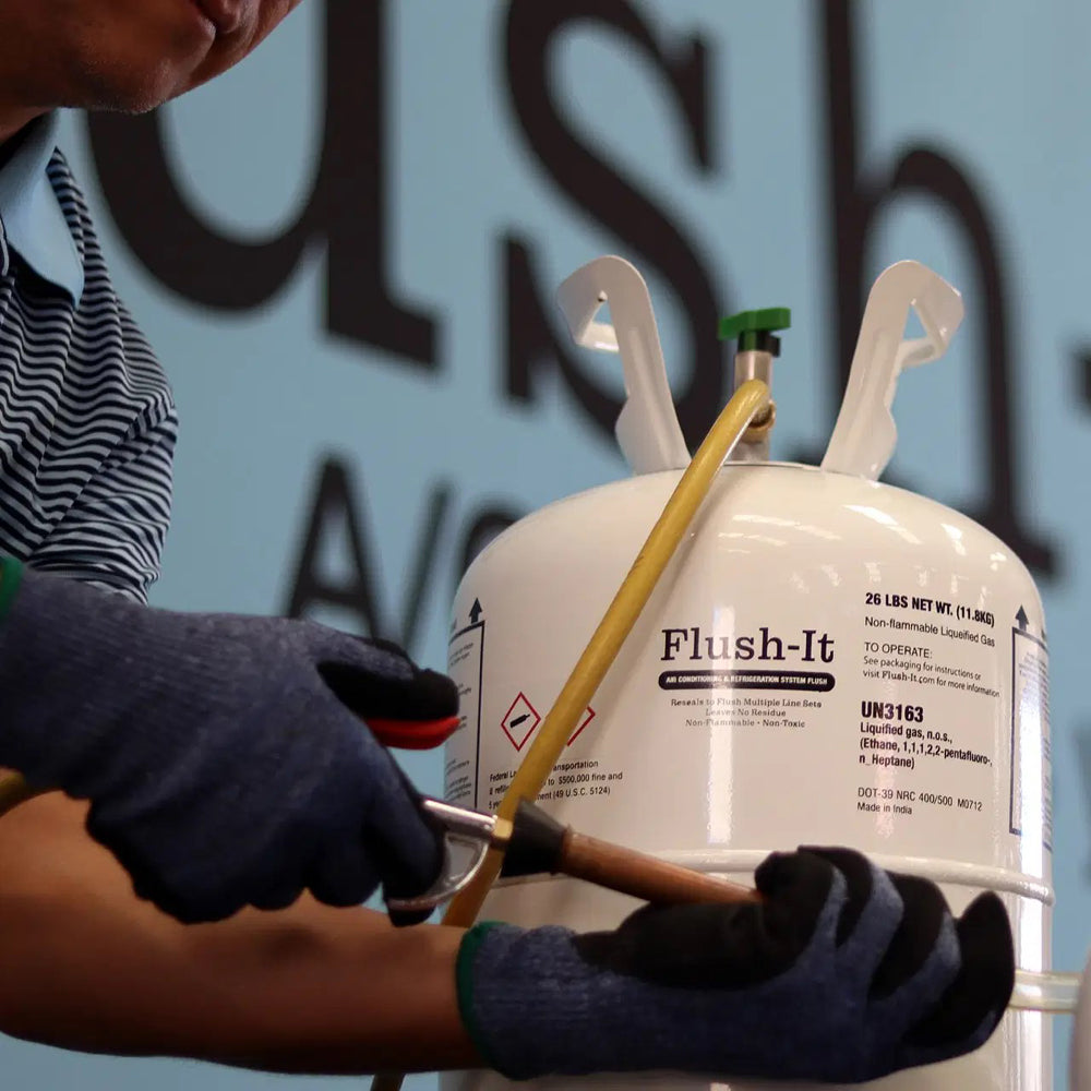 For superior cleaning, Flush-It's high-pressure formulation blasts away particulates, oils, sludges, and other residues. Flush-It is sold as a complete aerosol flush system and includes all necessary parts to flush multiple A/C systems, including resealable canister, hose, and injection nozzle. For cost, ease of use and convenience, Flush-It is a superior aerosol flush system.